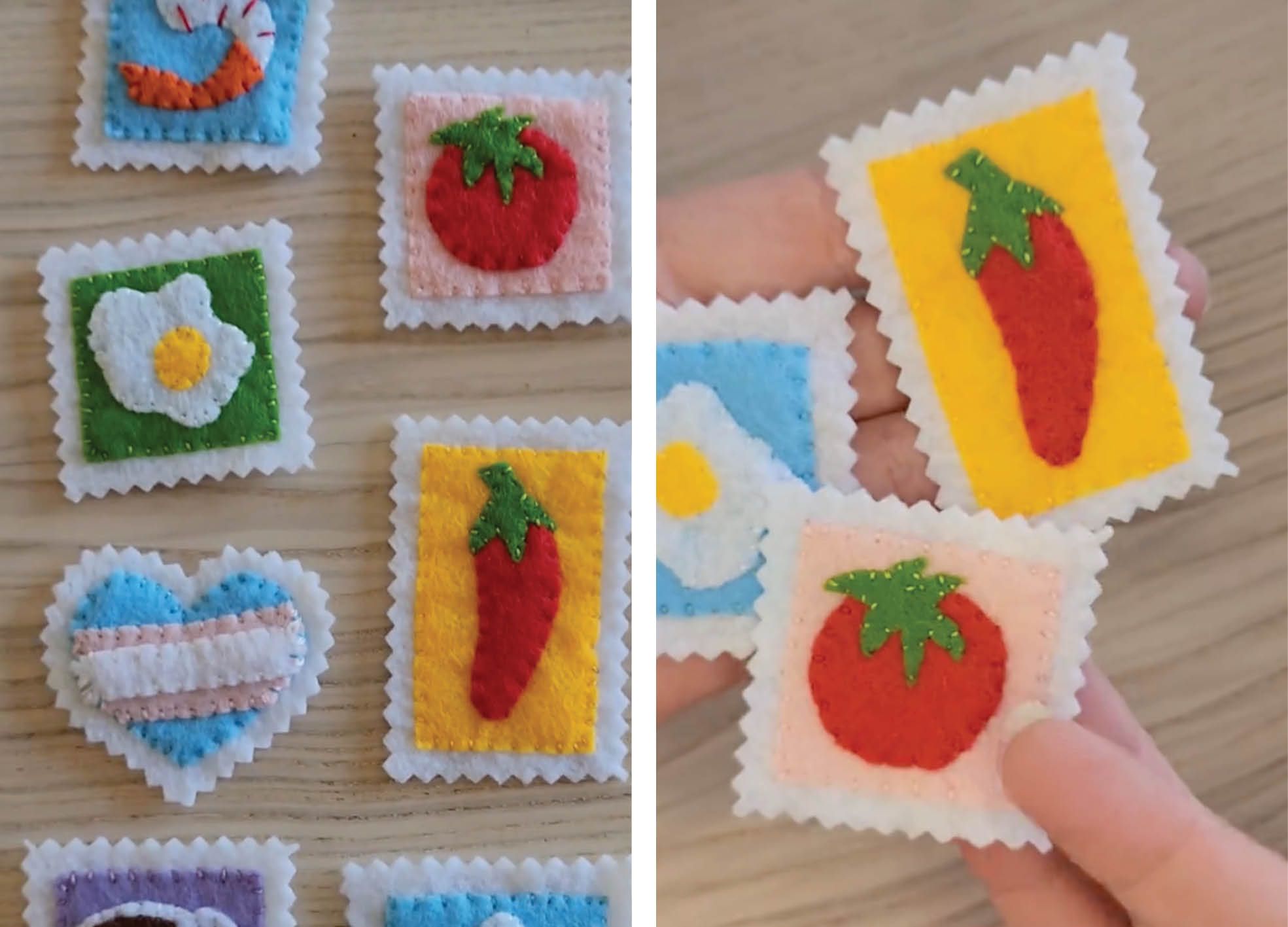 In need of a portable project this gift-giving season? Grab a basket and fill it with coloured felt, embroidery cotton and a pair of pinking shears. Don’t forget to pack your imagination and you’ve got everything you need for crafting little felt patches to gift, on the go!