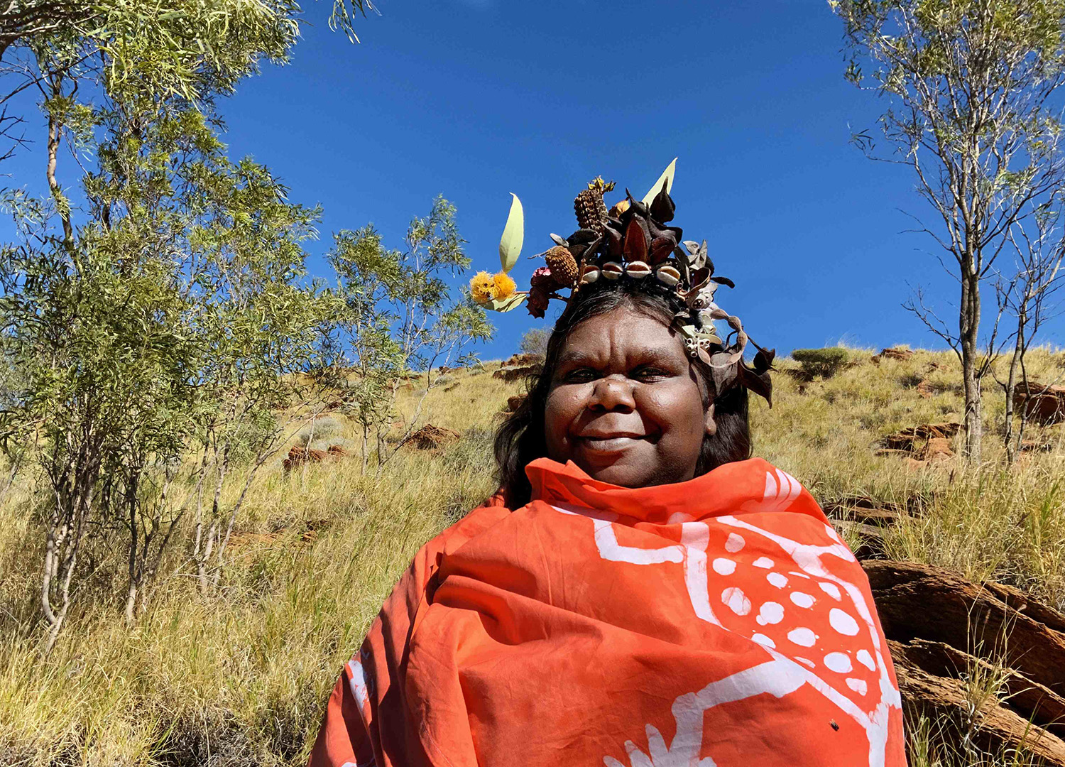 top MANDY MALBUNKA, ILTJA NTJARRA (MANY HANDS) ART CENTRE left YARRABAH ARTS & CULTURAL PRECINCT X SIMONE ARNOL 2022 right CINDY ROSTRON WEARS PIECES FROM ‘A BEAUTIFUL CHAOS’ COLLECTION BY KYLIE CALDWELL IN COLLABORATION WITH SPELL BY MARLEY MORGAN