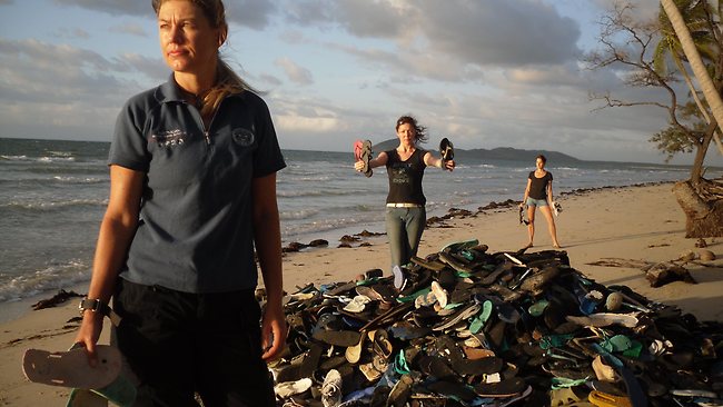 Sure, we’ve all daydreamed of being swept onto a gorgeous, remote beach… But what doesn’t figure into that fantasy is being washed up alongside over four thousand thongs! Chili Beach residents (all nine of them) woke up to this dirty reality recently when marine conservation group Tangaroa Blue Foundation led sixty environmental volunteers in a clean up of their Cape York idyl. The mammoth five day effort netted a whopping five tonnes of rubbish – over 50% of it plastic. The biggest bounty amongst this unwanted haul was thongs: 4,500 pieces of the iconic footwear were collected, adding rubbery bulk to a tip pile that included nasties like toothbrushes and combs. What’s most astounding is that the Queensland haven seldom sees a soul, never mind a sole. Unluckily for residents, it seems the remote northern beach is the final dumping ground for a trash trail that washes ashore from both international and local waters. Tourists may rarely make it to this sandy strip, but their trash arrives in waves.