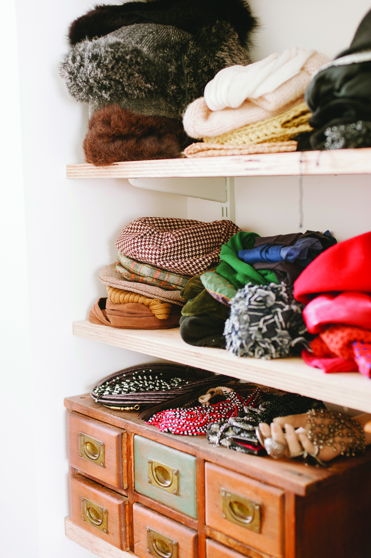 The storage and order of your wardrobe is the fundamental first step in creating a cohesive, sustainable style. Throw out old wire coat hangers and bring order to your closet. Find a system that works for you.