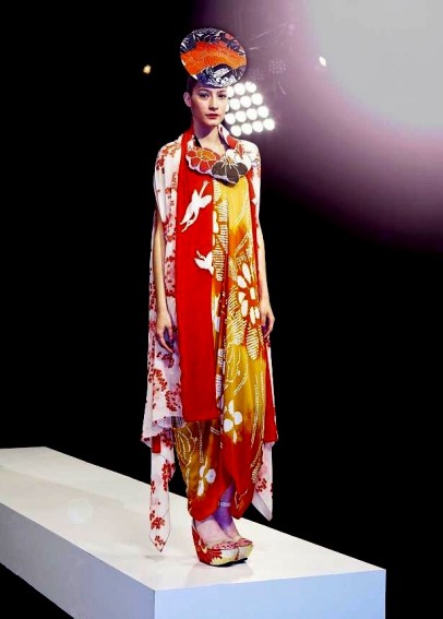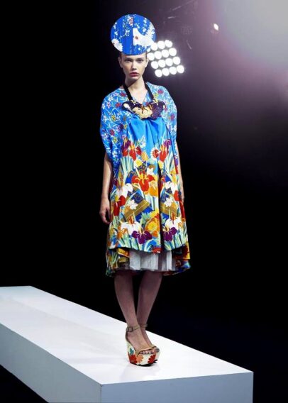 The second range hinted at Akira’s beginnings with Japanese-inspired prints, origami folds and layered patterns draped into simple silhouettes. The last plinth featured an array of colours. Intricate Shibori dresses were complimented with neckpieces reminiscent of glorious sea creatures. The attention to detail and ability to create such dramatic yet soft structures proved Akira is truly one of Australia’s fashion geniuses.