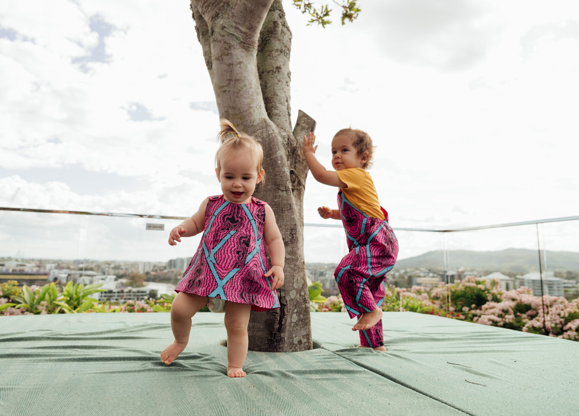 Our garments are ethically made in Australia. We use only natural fibres and water-based ink to screen-print our fabrics by hand. All our offcuts are repurposed into baby rompers, and smaller offcuts are crafted into accessories designed and sewn by refugees and asylum seekers via the social enterprise Second Stitch.