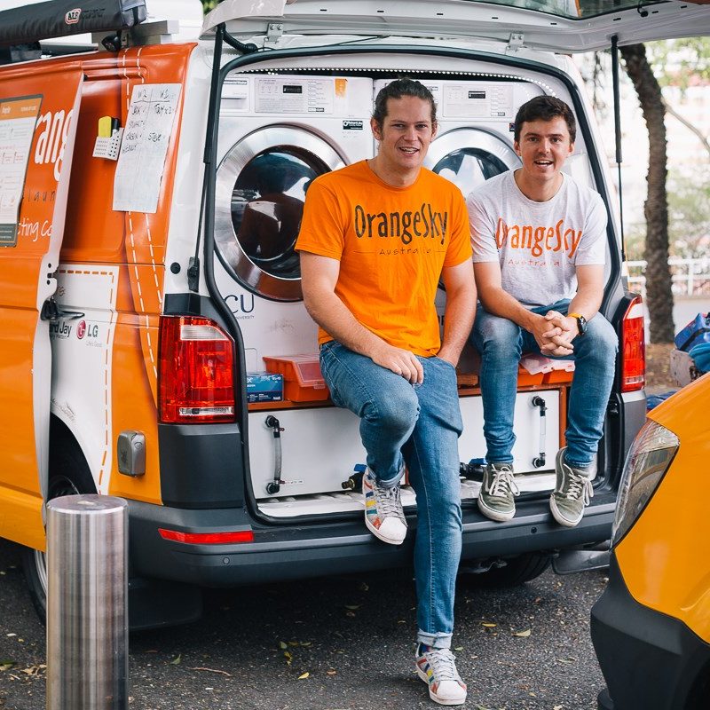 Orange Sky Laundry began in September 2014 when best mates and social entrepreneurs Nic Marchesi and Lucas Patchett built a free mobile laundry in their old van to help people experiencing homelessness. What started as one laundry van in Brisbane, has now expanded into a fleet of 20 laundry vans, three shower vans and six hybrid vans (a combination of washers, dryers and showers) across Australia. Orange Sky Laundry operates at 250 locations each week, where their volunteers form positive connections with communities through clean clothes, warm showers and genuine conversation. Nic & Lucas were recipients of the Medal of the Order of Australia (OAM) in 2020, and were named the Young Australians of the Year in 2016.