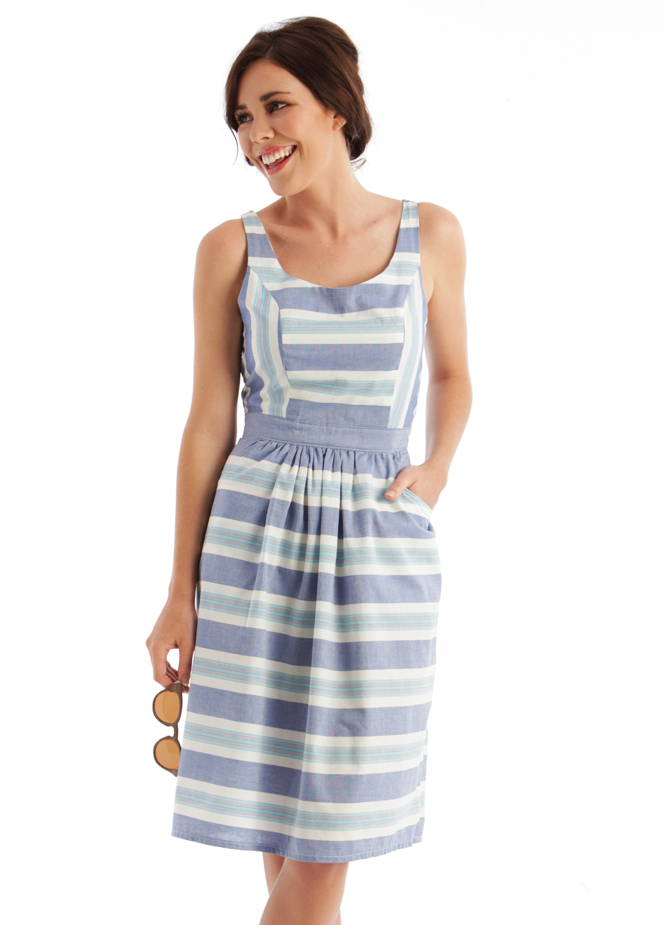 Lazy picnics in the park, long walks on the beach or balmy evenings out with friends: there’s nowhere this breezily stylish summer frock won’t take you! For this fantastic free pattern, we teamed up the lovely lasses from Pattern Runway, a boutique pattern company with all kinds of stylish downloadable sewing patterns. Wear this little number with flats, with hats, with sunnies and with headscarves – dress it up or down for any occasion and enjoy sporting this seasonal staple all summer long. We made ours in a light, breathable cotton from The Fabric Store, but it also works well in lived-in linen or beautiful, draped silk – play around with different pattern options like stripes, polka dots, printed or plain. And the best thing about this fantastic frock? All the compliments (and requests) you’ll get when your friends find out that you made it with your own fair hands.