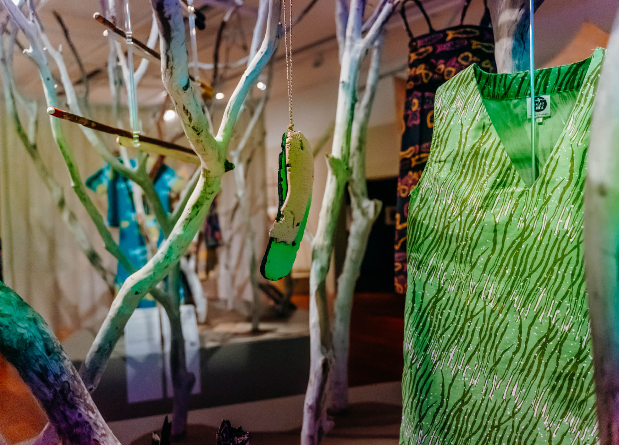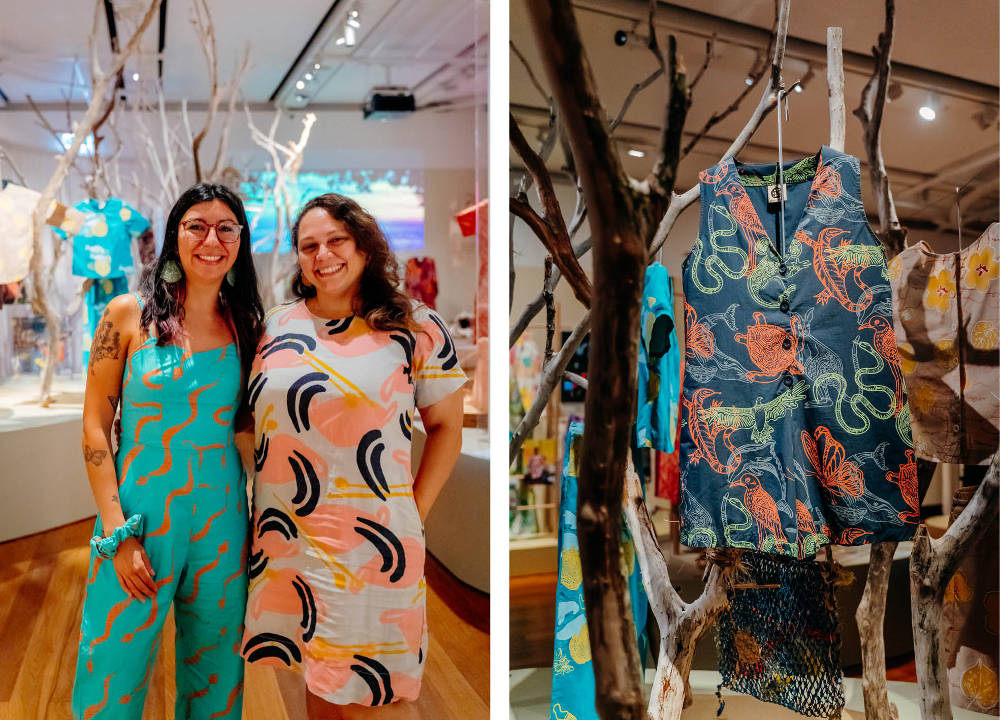 I hope people leave with a deeper appreciation for the diversity of Aboriginal cultures and the richness of our knowledge systems. Every garment reflects a unique place, story and perspective, and I want visitors to recognise the depth of creativity, innovation and cultural expression behind each piece. Most of all, I hope they feel a greater sense of respect, connection and curiosity about the First Nations’ stories woven through the exhibition. And that it inspires them to shop and wear Magpie Goose clothing!