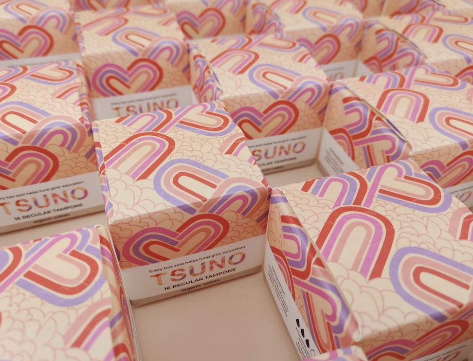 Your periods might not make you feel good, but Tsuno aims to make you (and others) feel better – as 50% of the profits of this social enterprise go to One Girl, a charity that directs funds towards educating women and girls living in poverty. Known for their bright, bold packaging featuring local artists such as Erin Lightfoot, Kip & Co and Mirador, Tsuno recently invited our very own multi-hat wearing editor-in-chief, Kelley, to design the packaging for their ‘regular‘ Certified Organic cotton tampons. “I wanted to create a design based on rainbows and clouds to represent hope – the duality of ‘good’ coming from ‘bad’, positivity rising from negativity and, of course, equality, connection and togetherness,” Kelley says about her rainbow design. “It was created just before 2020 went down a dark path… So if there is any time we need hope and equality and connection, it’s certainly now!” We caught up with Roz Campbell, founder of Tsuno, to chat about she fared in 2020, the One Girl charity and the sustainable goals of her brand.